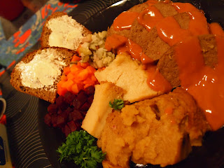 My Roast beef looked and smelled like a can of cat food. It's Seitan roast beef. It's fun to buy and eat them especially if you dont want to make a scene of the fact that it looks like you have your plate stuffed only with veggies. But this weren't that interesting and enjoyable - it felt like cheating myself.